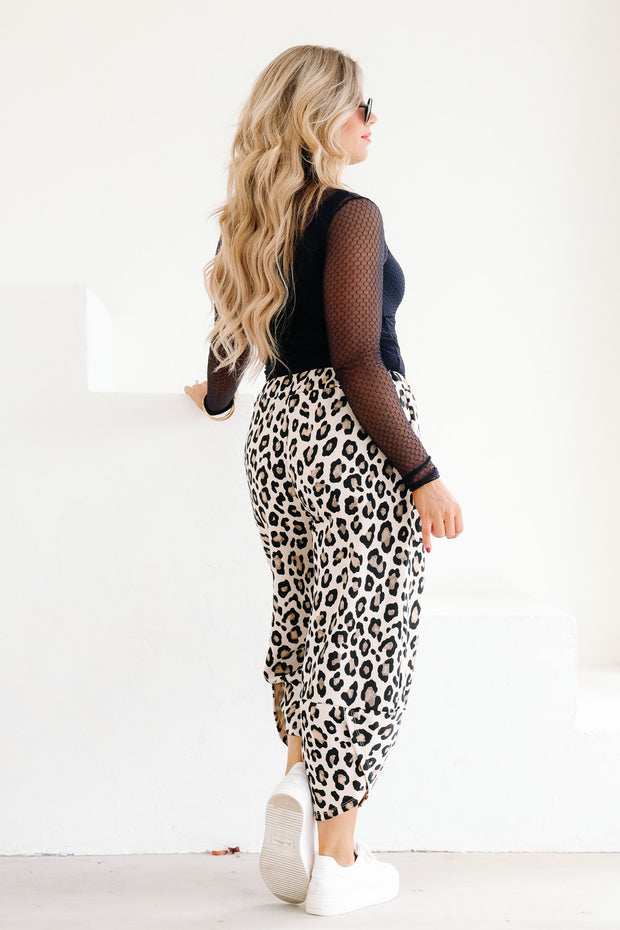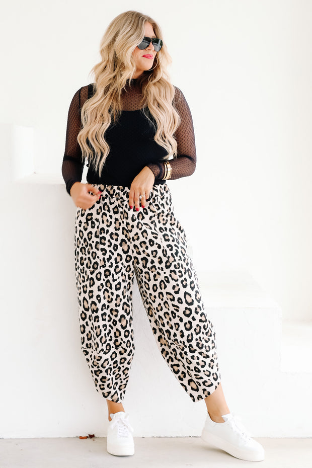 These Pants feature a comfortable elastic waistband and handy side pockets. Their unique animal print adds a stylish edge, while the barrel silhouette offers a relaxed, flattering fit perfect for everyday wear.