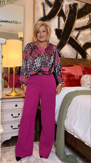 This Pant offers a front zip with button closure for a secure fit and easy wear. It includes practical side pockets and a wide leg silhouette that combines comfort with a stylish, relaxed shape.
