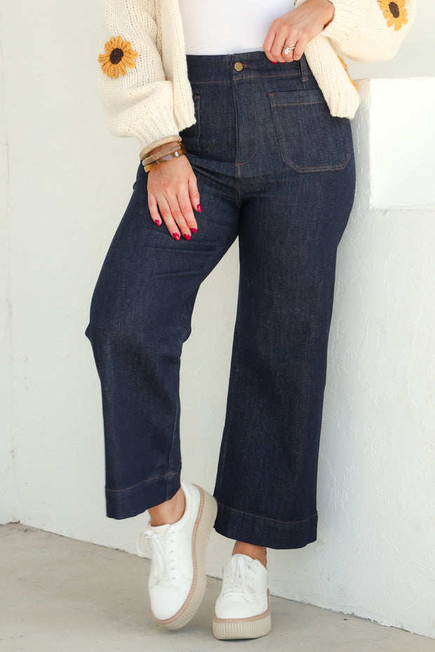 These Jeans feature a high waist and convenient side pockets. Made from durable denim, their wide leg silhouette offers a comfortable, relaxed fit for everyday wear.