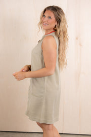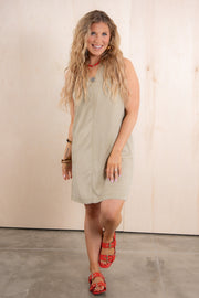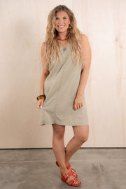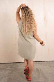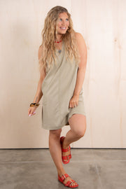 This mini dress features a flattering V-neckline and sleeveless design in a lovely dusty sand color. The soft material ensures comfort throughout the day, while the shorter length creates a stylish silhouette for casual or dressed-up occasions.