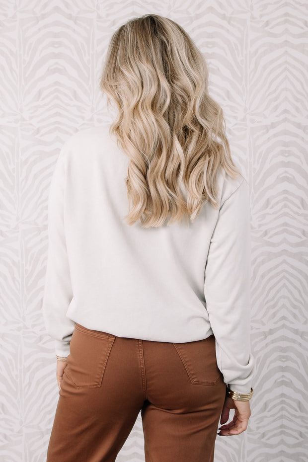 Embrace faith and style with this waist-length sweatshirt featuring a bold western graphic. Rounded neckline and long sleeves offer comfort and warmth for everyday wear.