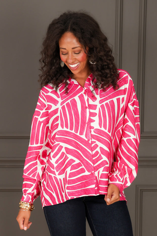 This Blouse features a top collar and long sleeves for a classic look. It reaches waist length and has a button-down front, making it easy to wear and style. The abstract print adds a unique touch to your outfit, perfect for both casual and dressy occasions.