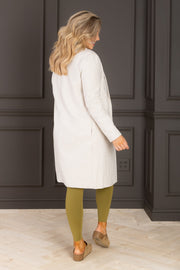 This Coat features a top collar and long sleeves for added warmth and style. Its longer length provides extra coverage, while the open front design allows for easy layering and a relaxed fit.