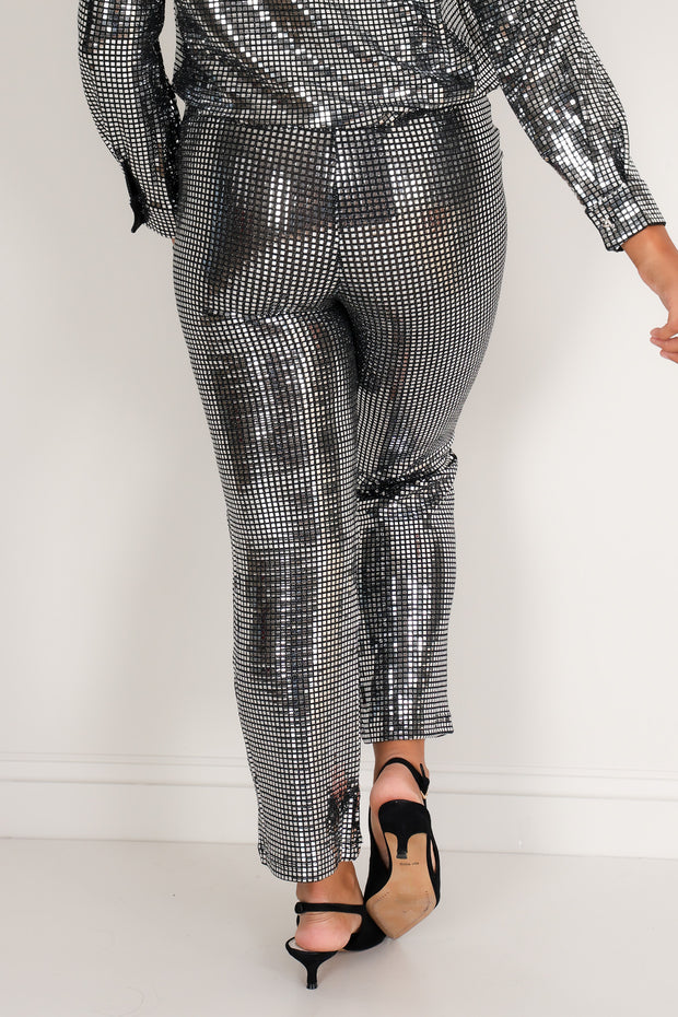 This Pant features a comfortable elastic pull-on waistband and a trendy wide-leg silhouette. Crafted from metallic material, these pants add a sleek, shiny finish to any outfit. Side pockets offer practicality without sacrificing style.
