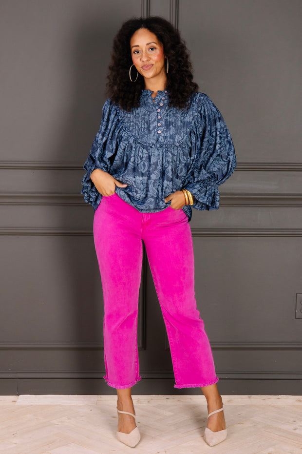 These wide leg jeans feature a high waist with zip and button closure. Front and back pockets add practicality, combining comfort and style for everyday wear.