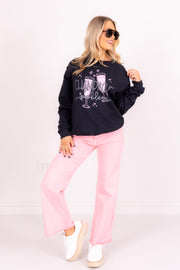 DOORBUSTER Champagne Problems Black Long Sleeve Sweatshirt