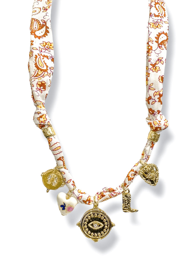 This necklace combines the elegance of a scarf with the charm of a delicate necklace. Its lightweight design makes it comfortable to wear all day, adding a subtle touch of style to any outfit. Perfect for layering or wearing alone.