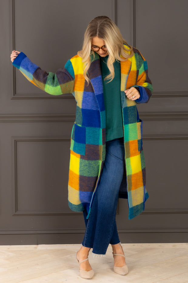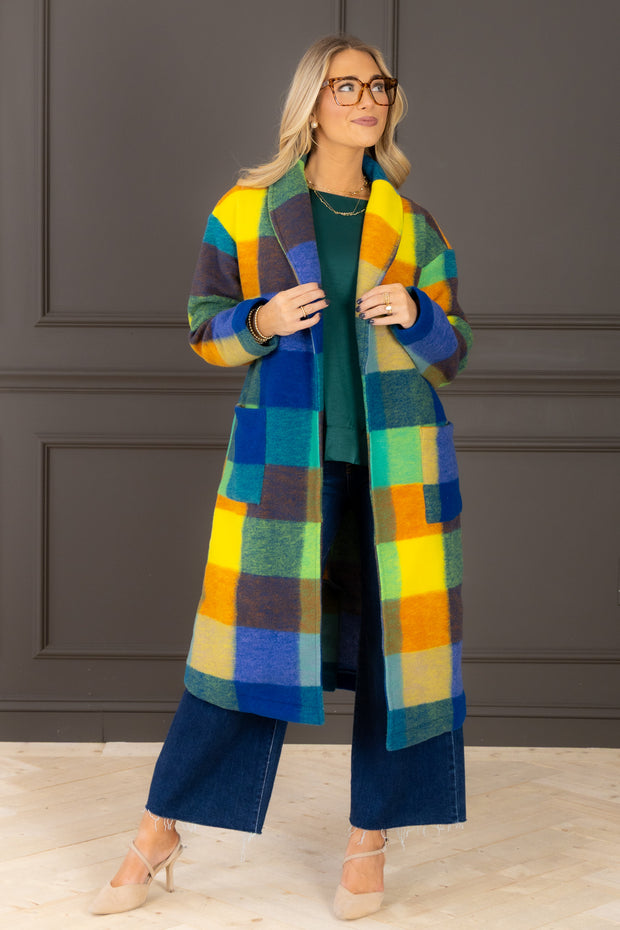 This Coat features a top collar, long sleeves, and an open front design for easy layering. Its longer length adds extra coverage, while front pockets provide convenient storage. Perfect for staying comfortable and stylish in cooler weather.