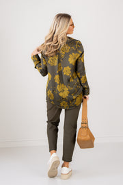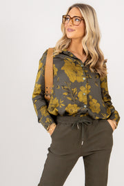 Least of These Green Floral Print Long Sleeve Blouse
