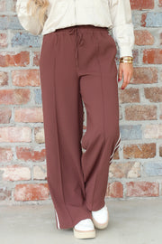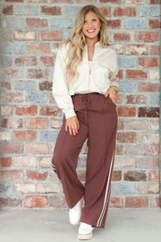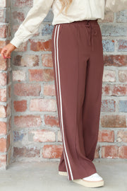 These full-length pants are light, flowy, and easy to wear, made from breathable crinkle woven fabric with contrast stripe details along the seams. Featuring a high rise and elastic waistband, they’re perfect for everyday comfort and style.