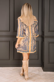 This half sleeve button-down dress features a camel paisley print, a small tassel hemline, and handy side pockets. Made with breathable, comfortable fabric, it combines style and ease for all-day wear.