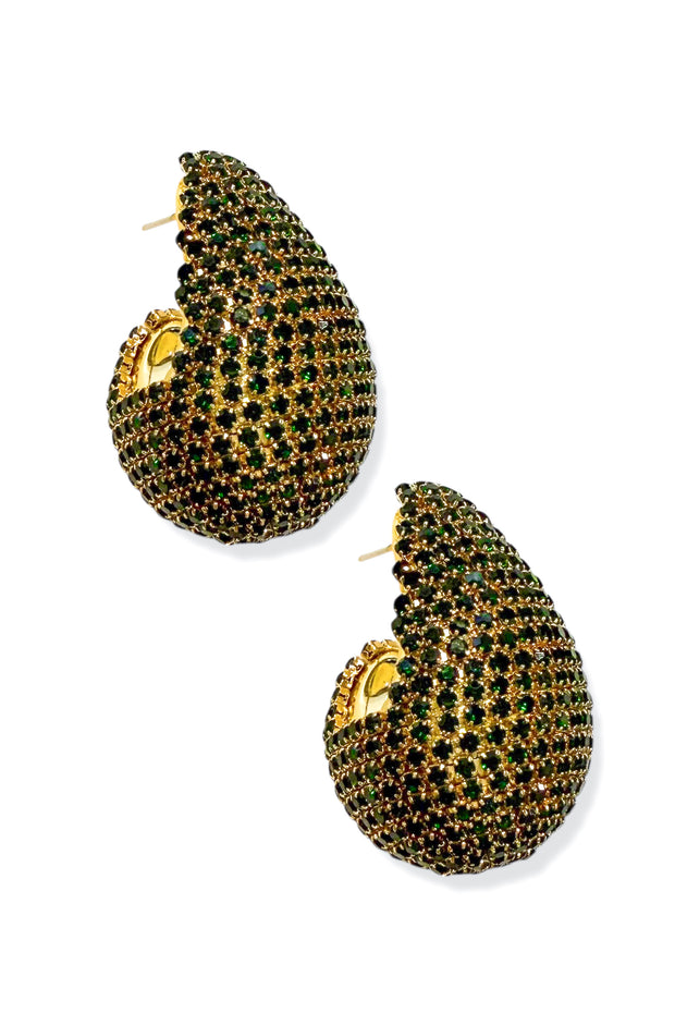 These earrings showcase shimmering emerald stones in a delicate teardrop design, adding elegant sparkle and color for any occasion, with comfortable, lightweight wear.