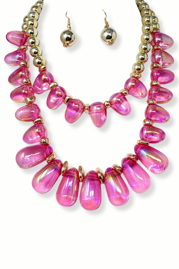This chunky beaded double-layered necklace adds texture and dimension to any outfit, perfect for elevating your everyday look or complementing special occasions.