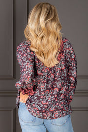 The On My Side Brown Mix Floral Print Long Sleeve Top features a delicate floral pattern on breathable, comfortable fabric. It includes a ruffle collar and button bust detail, adding a charming touch to its classic long sleeve design.