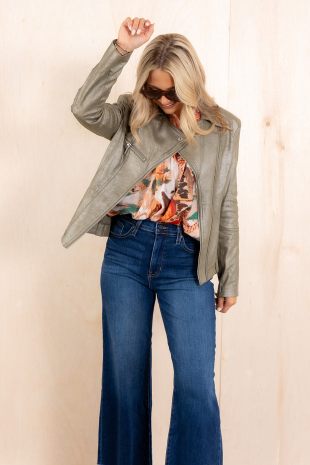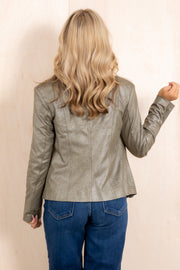 This waist-length jacket features a top collar and long sleeves for a polished look. The hook closure front and faux leather and zipper details add a refined touch, making it a stylish and versatile addition to your wardrobe.