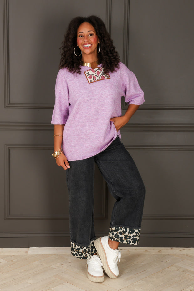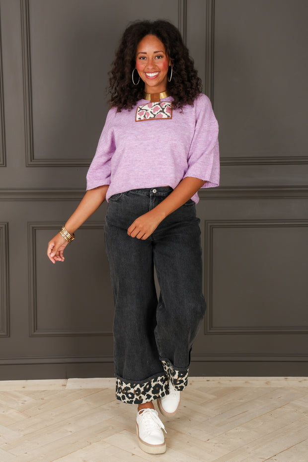 Don't Go Denim Black Wide Leg Cheetah Cuff Pant $74.95