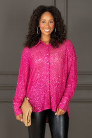 Introducing the perfect party top. Our Ready To Party Sequin Top features an eye-catching, fully sequined bodice, combined with a classic button-down front and top collar. Long sleeves, make this top chic but comfortable, ensuring you are always ready to make a statement.