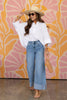 Introducing this Wide Leg Jean. Crafted with an acid washed material, this chic piece features front zip button closure, functional pockets, and a cropped wide leg silhouette.