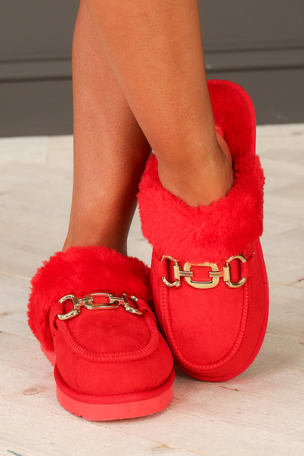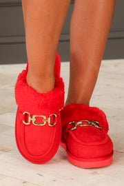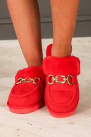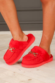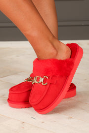 Vegan lounge mule with faux-fur lining and ornament detail.