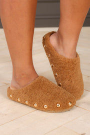 Step into cozy comfort with the Vintage Havana Thrill 2 Light Brown Slipper. These teddy fur slippers feature soft, plush material that keeps your feet warm, while gold stud detailing adds a subtle touch of style. Perfect for relaxing at home with a hint of vintage charm.