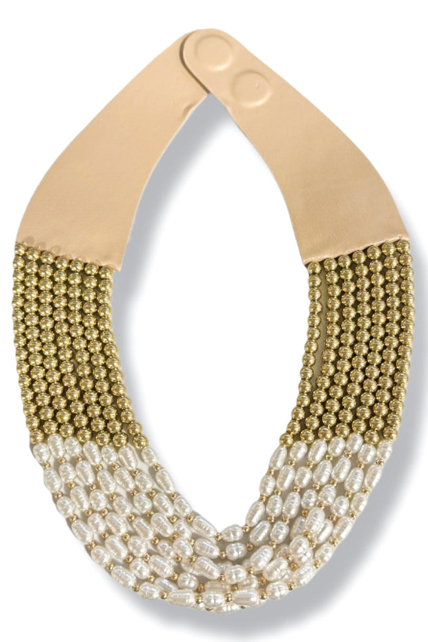 This layered necklace combines elegant pearls with sleek metal balls for a stylish, versatile look. Perfect for adding a subtle touch of sophistication to any outfit, it’s lightweight and easy to wear all day.