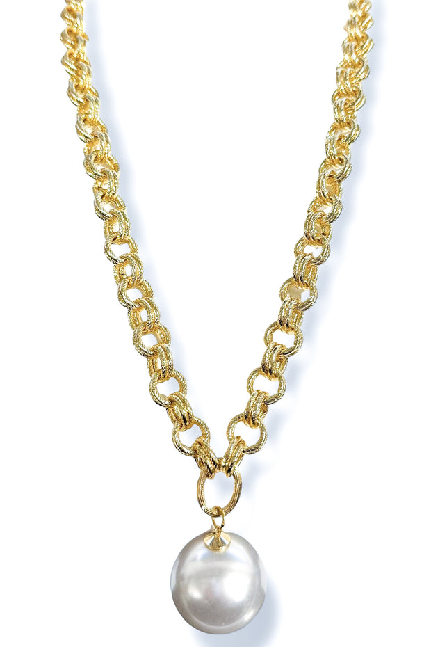 Elegant long chain necklace featuring a lustrous pearl pendant. Perfect for layering or wearing solo, this timeless piece adds sophistication to any outfit.