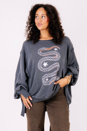 Free People Snake Camden Long Sleeve Sweatshirt