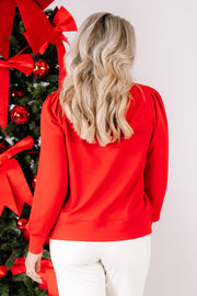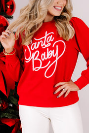 Cozy Santa Baby sweatshirt featuring a playful graphic on the front. Rounded neckline and long sleeves provide warmth, while the waist-length cut offers a flattering fit.
