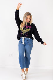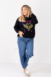 Flying High Black Leopard Free Bird Long Sleeve Sweatshirt