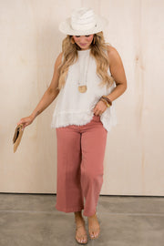 This Oatmeal Sleeveless Frey Hem Top is a must-have for any wardrobe. With its rounded neckline and sleeveless silhouette, it provides a versatile and comfortable style that can be dressed up or down.