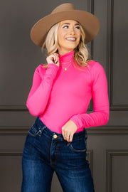 Simply Effortless Mock Neck Fuchsia Bodysuit