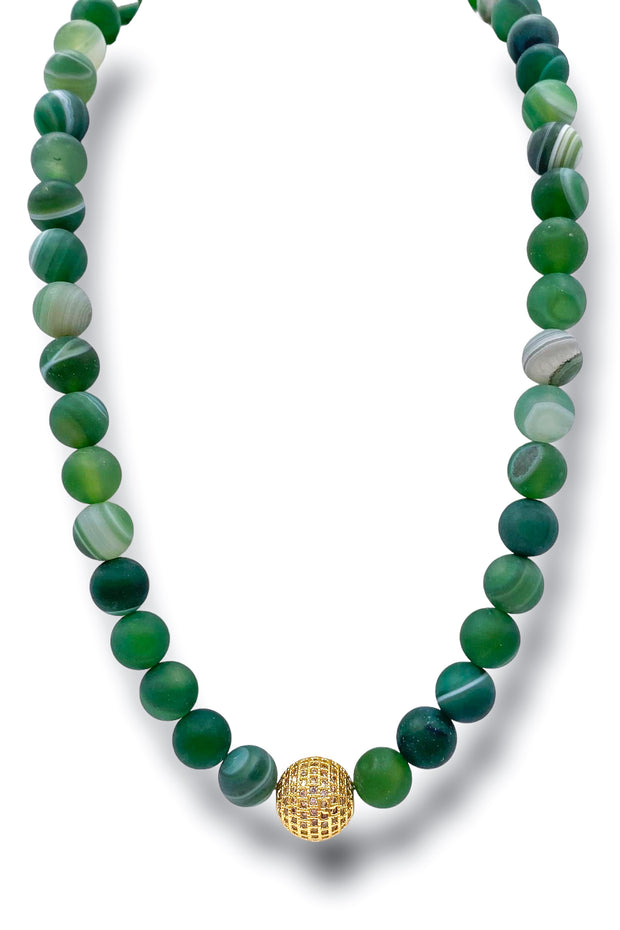 This In Full Swing Necklace features a 10mm gemstone beaded necklace, adding a pop of color to your wardrobe. A CZ bead detail adds a touch of elegance and versatility. Elevate your style with this gemstone necklace.