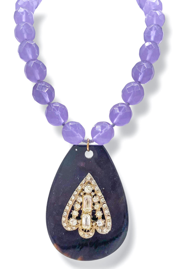 - 1960s Lavender Chalcedony Bead Necklace GA Collector
