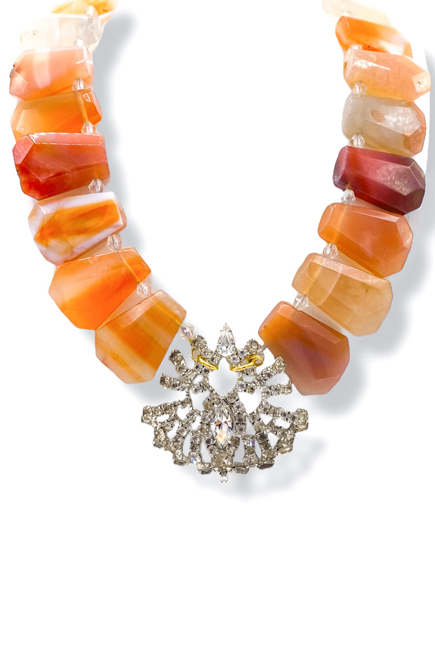 Made In the Deep South 1940s Brooch Red Agate Necklace