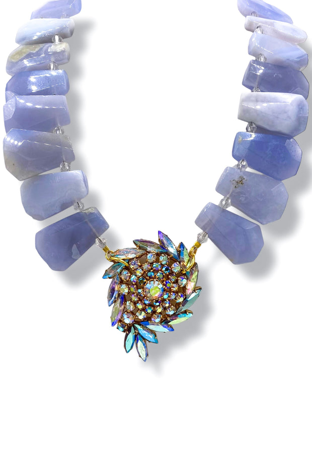 Made In The Deep South 1950s Brooch Blue Lace Agate Necklace