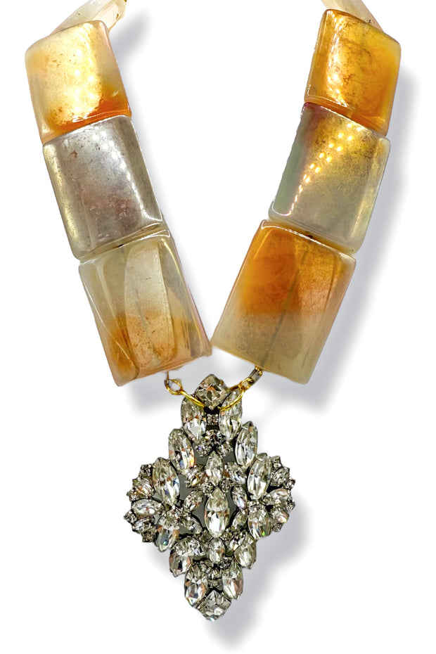 Made in the Deep South 1950s Brooch 1960s Pink Agate Beaded Necklace