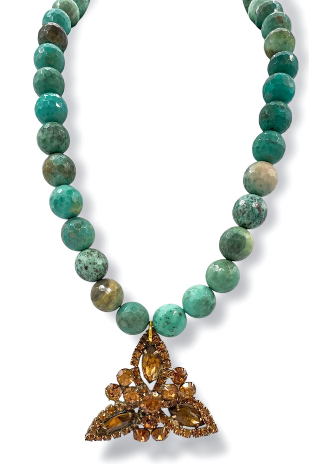 Made In The Deep South 1950s Brooch Chrysoprase Bead Necklace