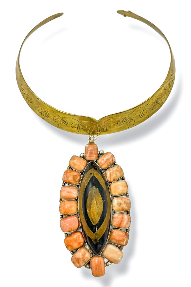 Made in the Deep South 1970s Horn & Agate 1960s Collar Necklace