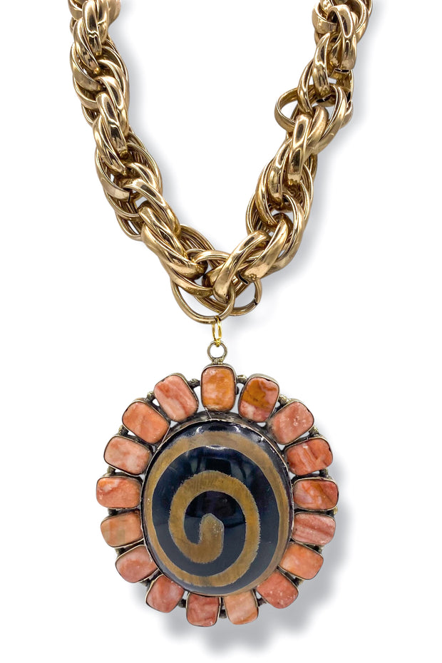 Made In The Deep South 1970s Horn Agate Pendant Necklace