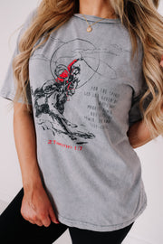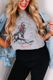 This Graphic Tee in mineral gray features a round neckline and short sleeves for a classic look. Made from breathable and comfortable material, it keeps you cool throughout the day. The design inspired by 2 Timothy 1:7 adds a meaningful touch to this stylish and easy-to-wear shirt.