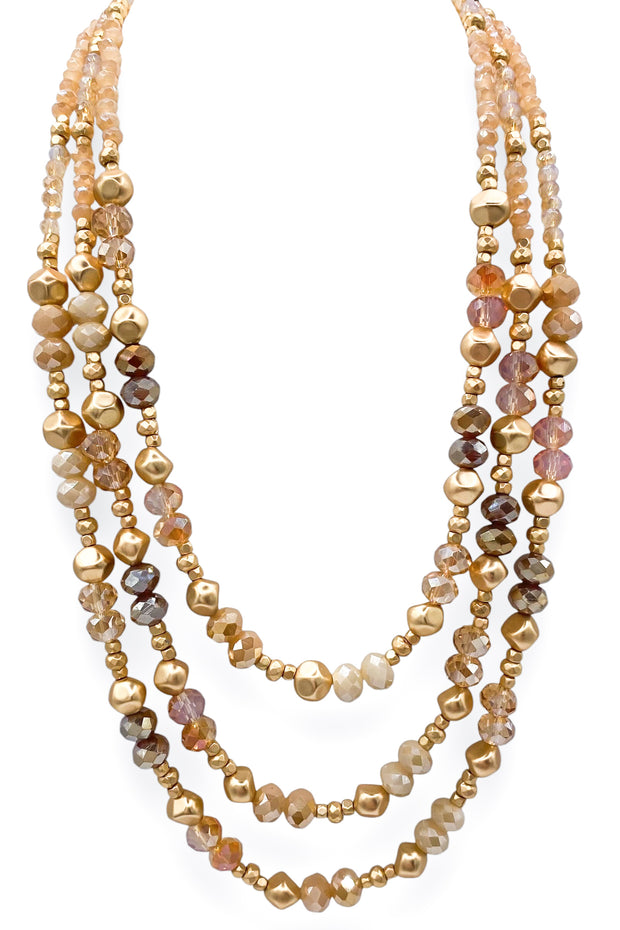 I present to you the Moment Of Truth Layered Necklace. This necklace features 3 layers of multi beads, including stunning gold and blue beads. With a unique and elegant design, this necklace will add a touch of sophistication to any outfit. Dress it up or down for any occasion.