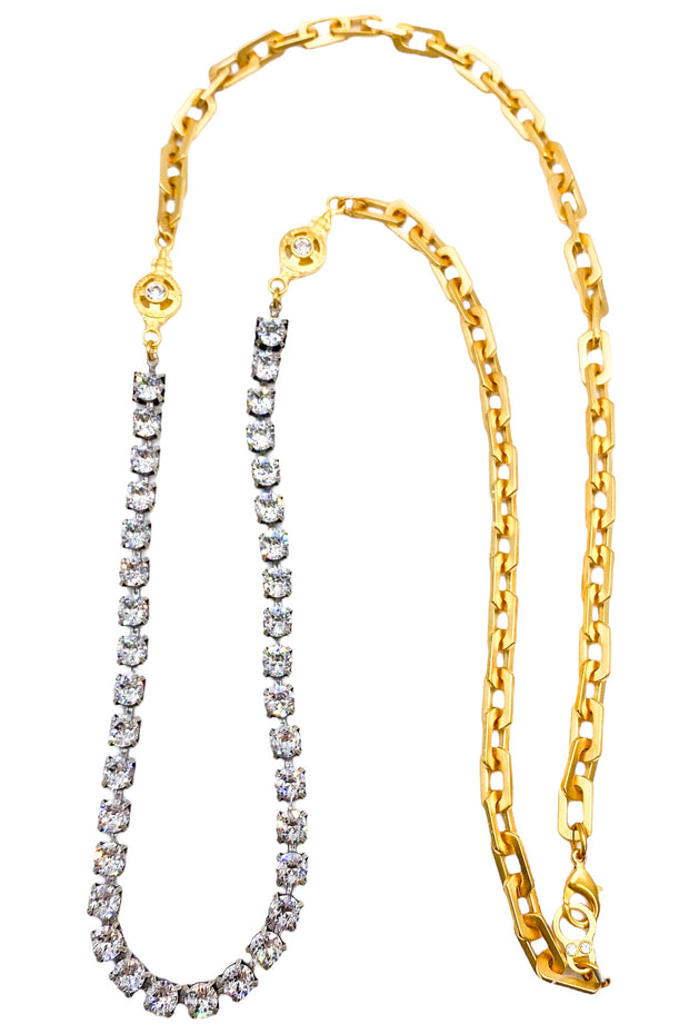 This necklace features 35″ of Austrian Crystal cupchain with Honfleur chain and Mini Dunkerque pendants. Absolutely beautiful all by itself or layered with our other designs.
