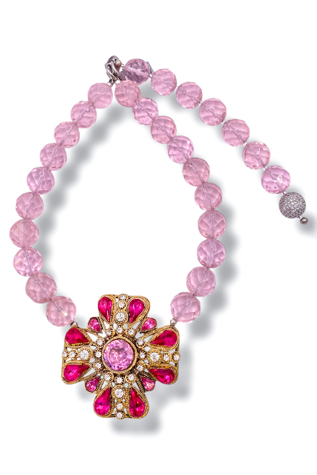 Each Rockstar in Rome piece is handmade in Atlanta, GA by designer Beth Hillier. Beth travels the world and collects vintage stones, crosses, coins, and broaches to create these stunning one-of-a-kind pieces.
