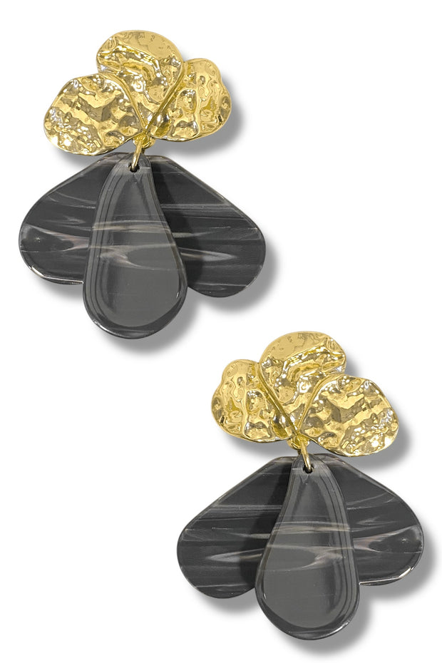 I Call the Shots Acetate Black and Gold Teardrop Drop Earrings