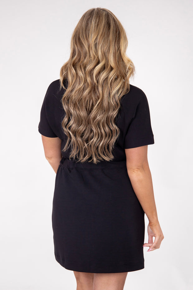 The AirEssentials Cinched T-Shirt Dress combines comfort and style with its rounded neckline and short sleeves. The elastic waistband cinches the waist for a flattering fit, making it a versatile and must-have addition to any wardrobe. Perfect for any occasion, this dress is sure to become a staple in your closet.