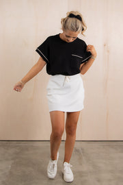 The silky-soft comfort of AirEssentials with extra coverage and a booty lift. This mini skort layers our ultra-drapey, breathable AirEssentials fabric over our Booty Boost® shorts to give your butt a lift. The stay-put inner shorts feature free-cut hems to prevent digging, plus a hidden interior pocket for your keys or phone.