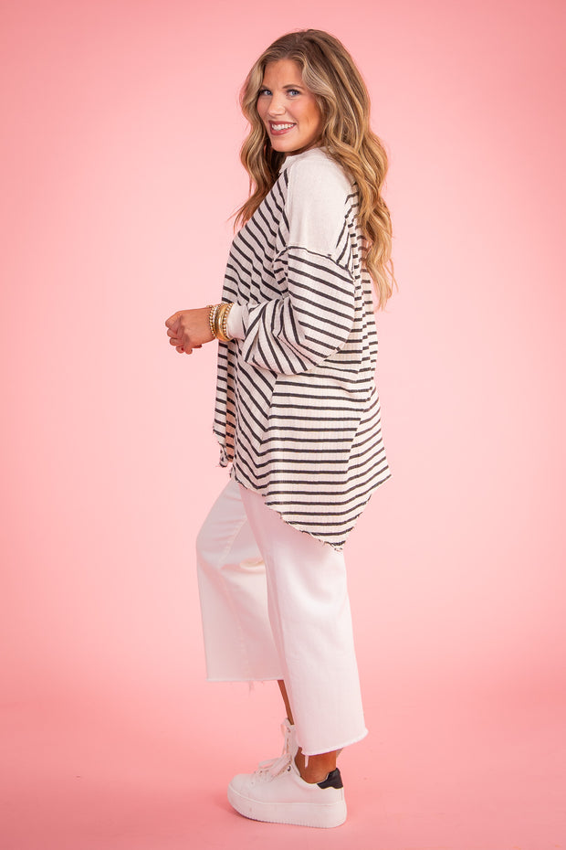 Wear a classic casual look for any occasion with the All For You Polo from Free People. This top features a top collar, button down v-neckline, and long sleeves for a timeless vibe. The striped print keeps you looking on-trend.