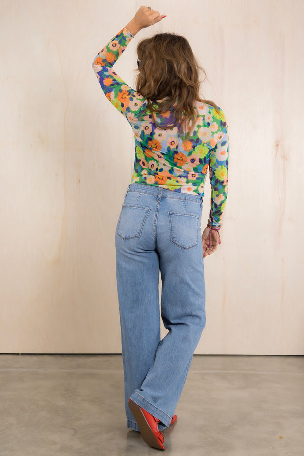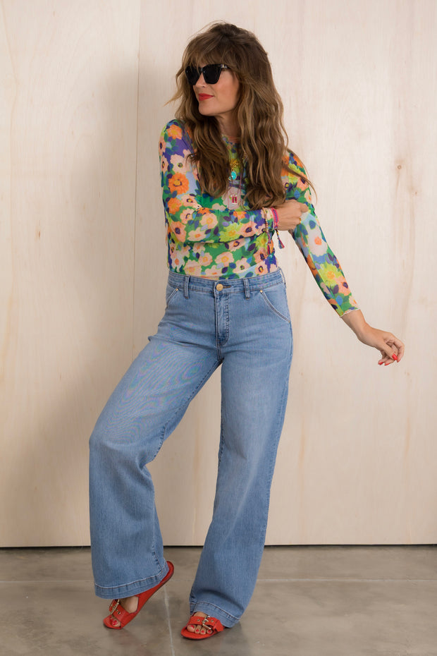 Stay stylish and comfortable with our Always Fun Layering Long Sleeve Top. The rounded neckline and long sleeves provide a flattering fit, while the mesh material adds a touch of femininity. The vibrant floral print adds a pop of color, making this a versatile addition to your wardrobe. Designed to hit at the waist, it's perfect for layering or wearing on its own.