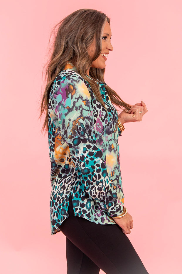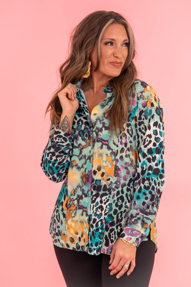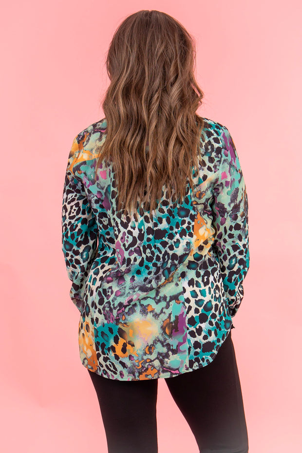 Upgrade your wardrobe with our Looking Your Way top. Stay stylish with its top collar and long sleeves, while the button down front adds convenience. Featuring an eye-catching animal print, this top will surely make a statement.
