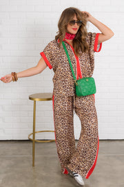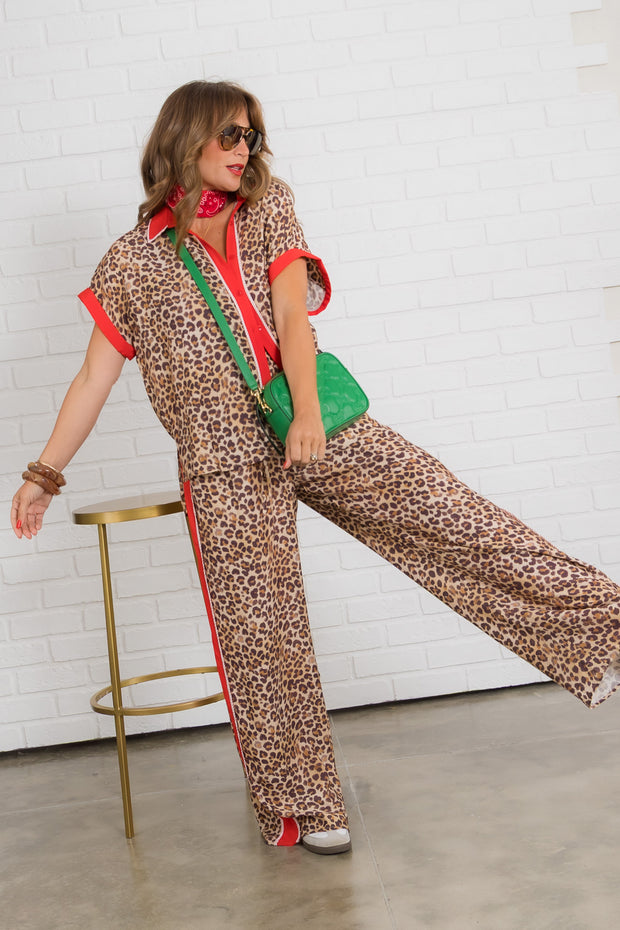 This Short Sleeve Top features a stylish top collar, short sleeves for added comfort, and a trendy leopard print design. With a waist-length fit and button down front, this top is perfect for adding a touch of animal print to your wardrobe.